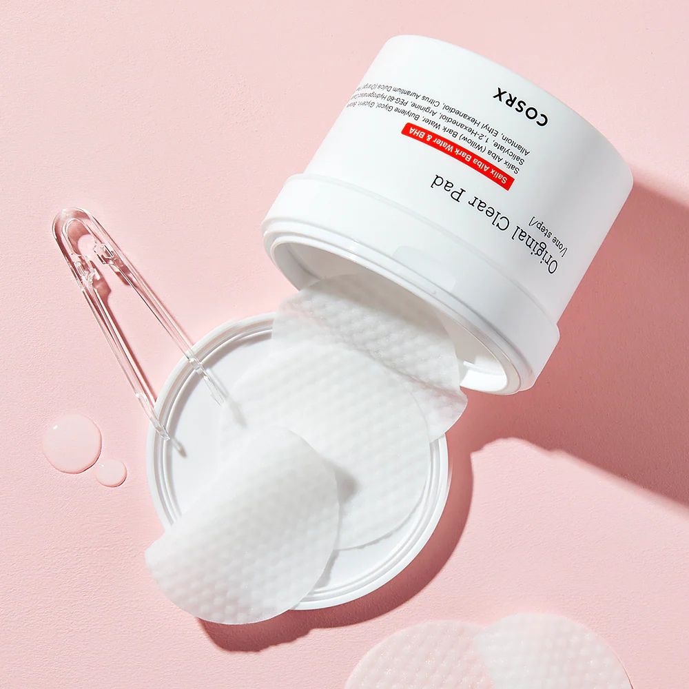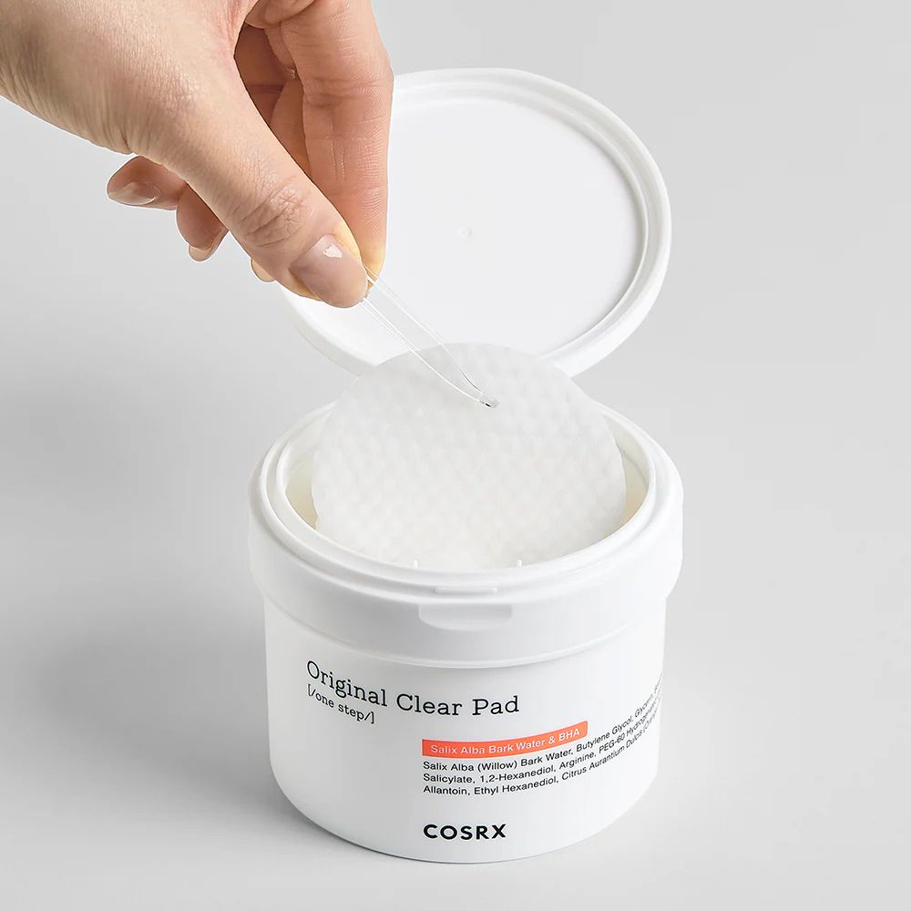 COSRX One Step Original Clear Pads are pre-soaked in betaine salicylate and willow bark water to chemically exfoliate without drying out your skin. Active ingredients penetrate deeply into pores to dissolve oil and dead skin cells, which help in controlling breakouts.