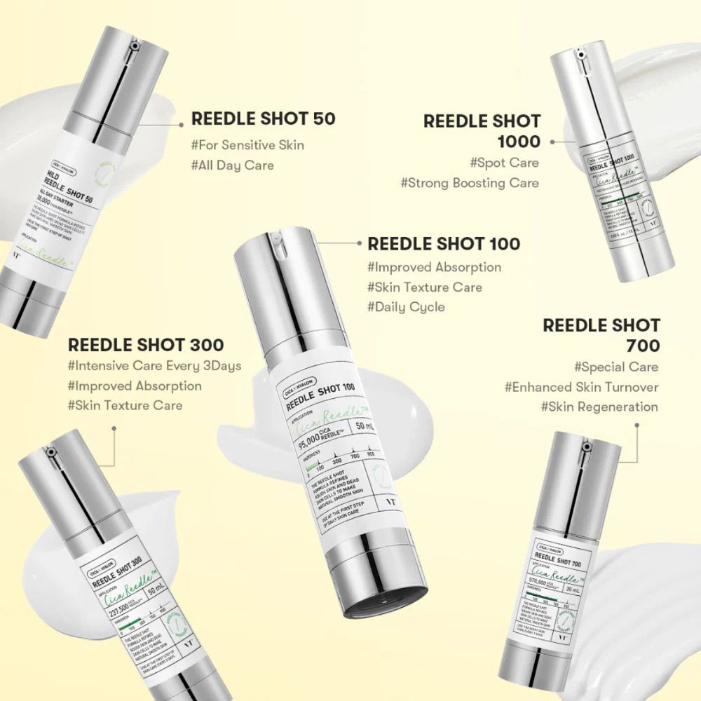 - Daily Skin Care Without Burden: Moist and quickly absorbed, REEDLE SHOT effectively delivers active ingredients to improve skin texture. The optimal mixing ratio is applied, so it is not burdensome to use daily. REEDLE SHOT 100 is the only product in VT's Riddle shot line that can gradually increase the frequency of use. Wake up your sleeping skin with daily facial massages.