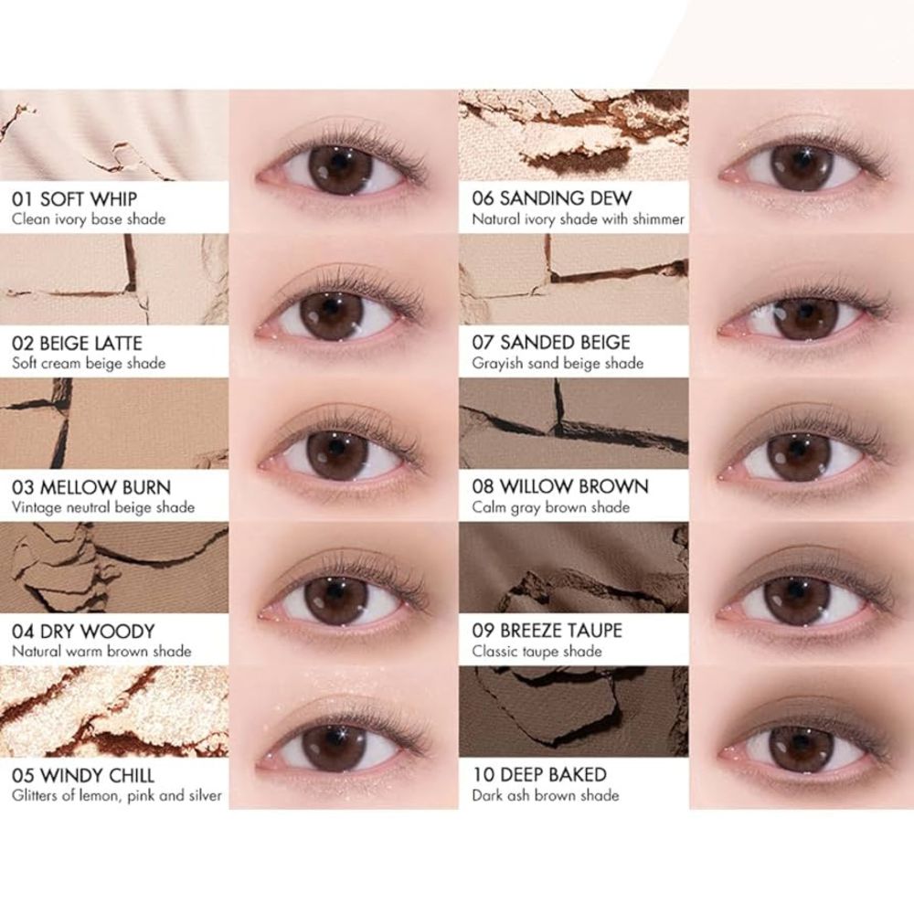 Comprehensive Palette for Every Look:Each palette includes 10 carefully selected colours, featuring a mix of matte and glittered shades. The beige brown colour chart evokes the gentle beauty of a soft sandy breeze, making this palette an essential addition to your makeup collection.