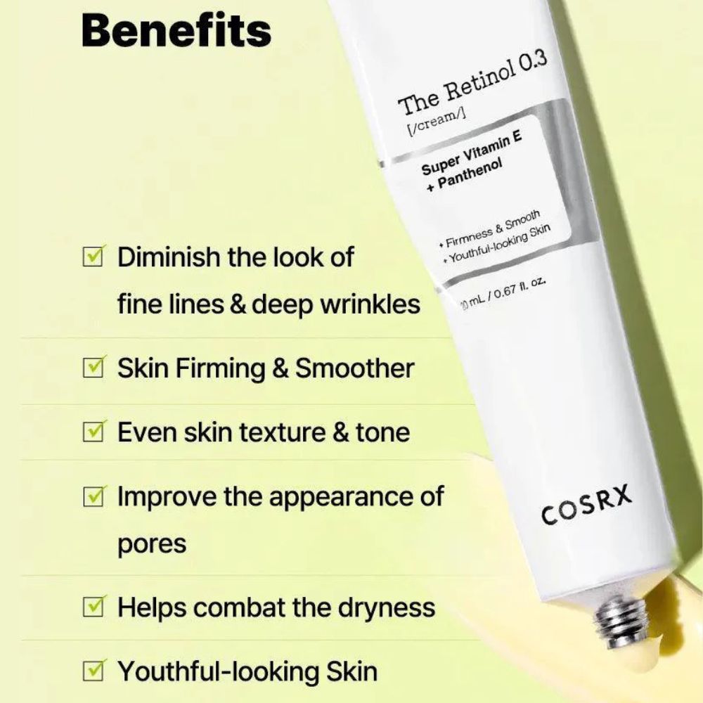 This cream contains 0.3% pure retinol to deliver potent anti-aging effects.