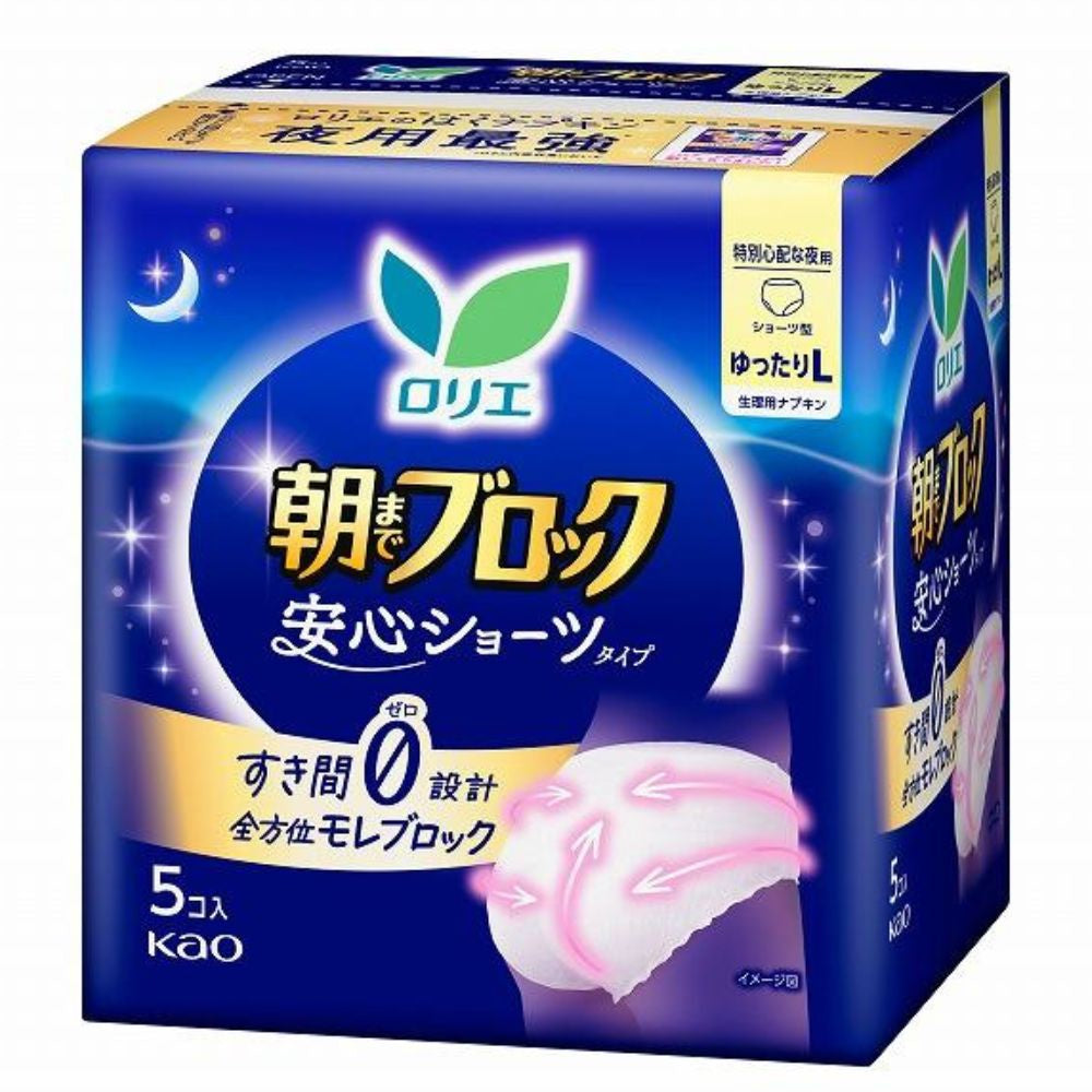 KAO LAURIER BLOCK SAFE PANTIES UNTIL MORNING LOOSE FIT SIZE L 5 PIECES
