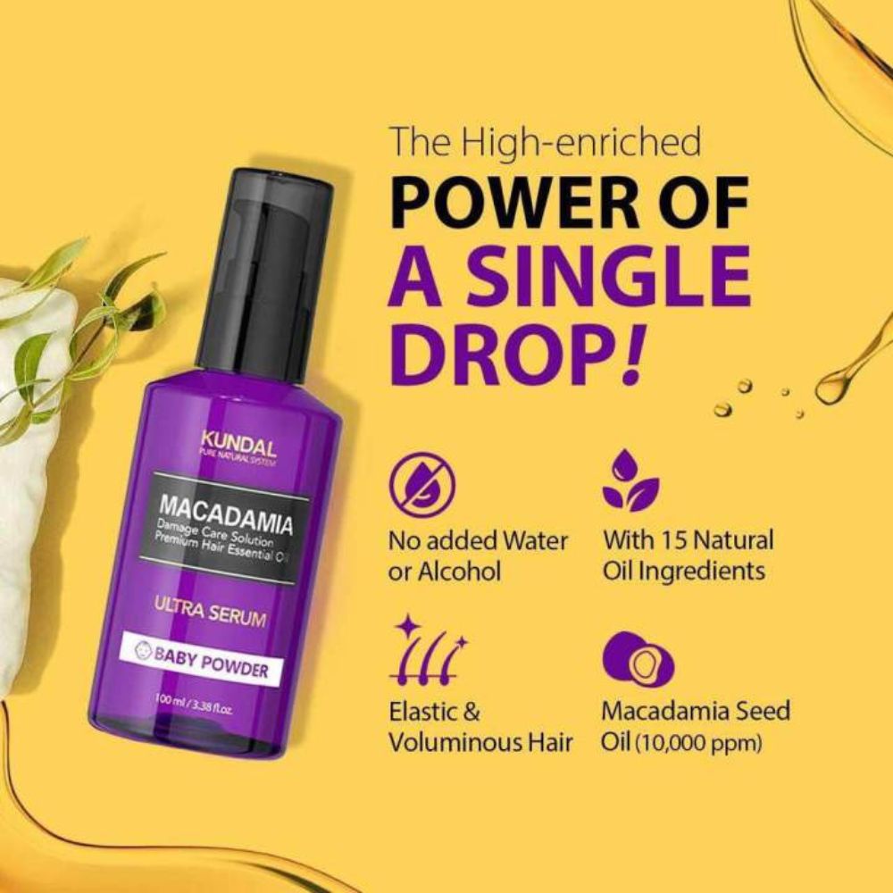 KUNDAL MACADAMIA HAIR SERUM - BABY POWDER 100ML