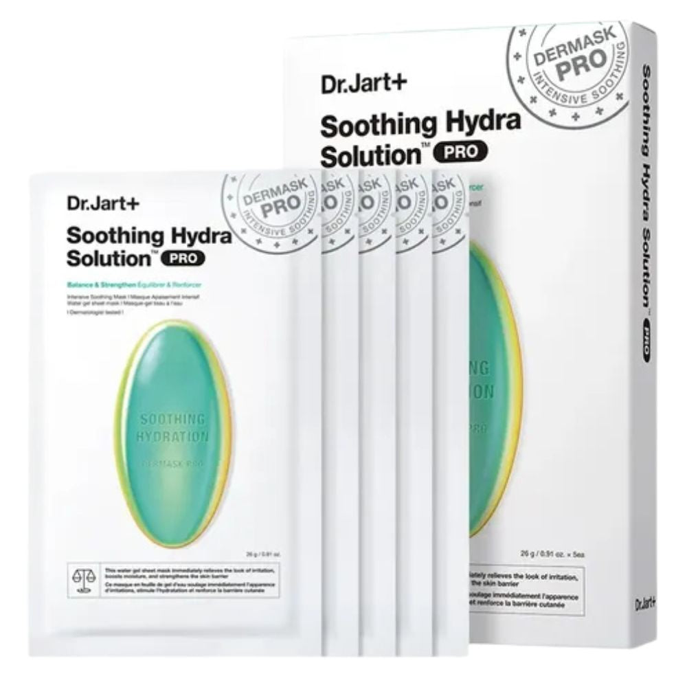 The Dr.Jart+ Dermask Soothing Hydra Solution Pro Sheet Mask Pack is a 5-piece set designed to provide intense hydration and soothing relief for irritated and sensitive skin.