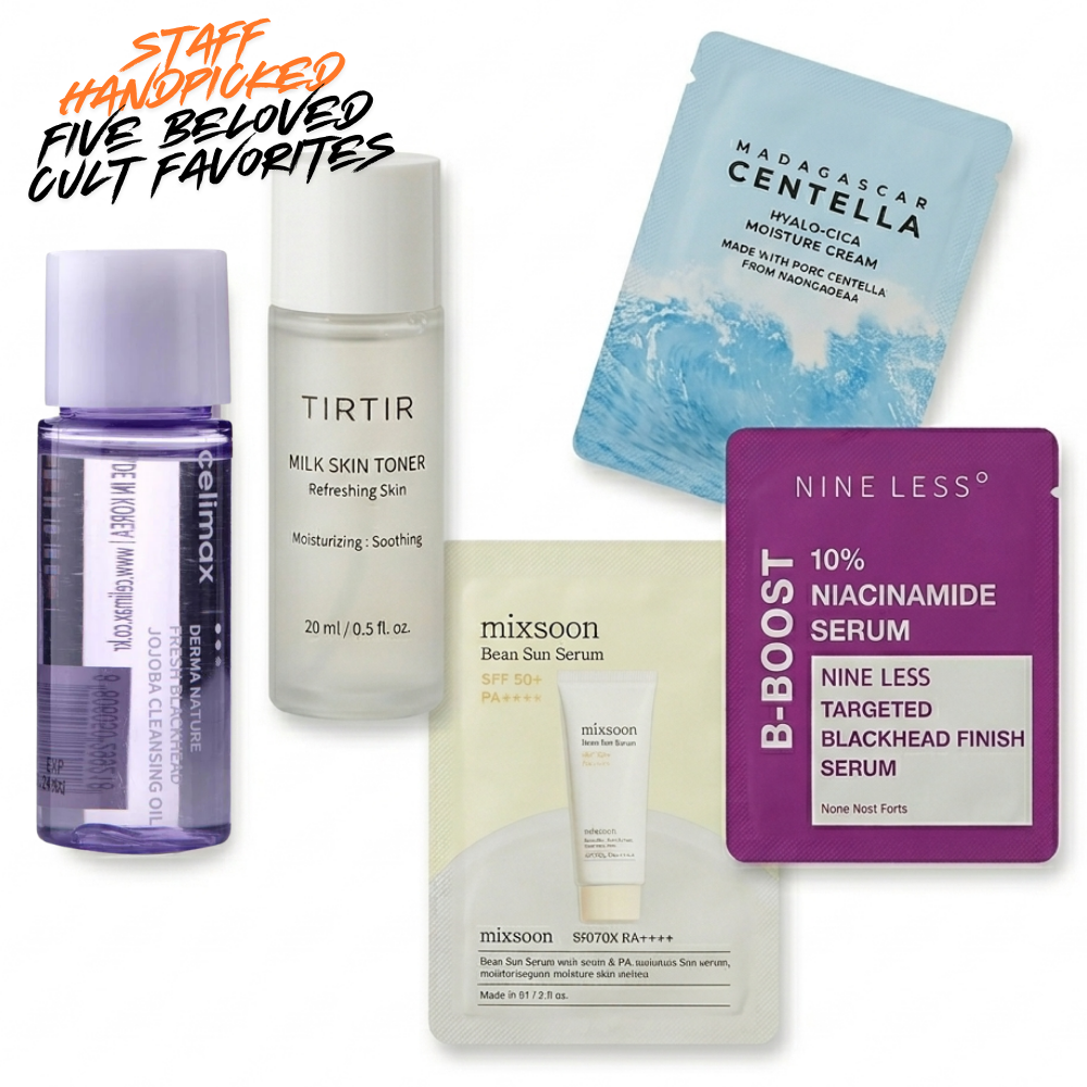 We’ve handpicked five beloved cult favorites from top brands like Mixsoon, Skin1004, TIRTIR, NINE LESS, and heimish to create the perfect skincare wardrobe for a fresh, radiant look. Whether you're traveling or just want to try the best of the best, this set has you covered from cleansing to final protection.