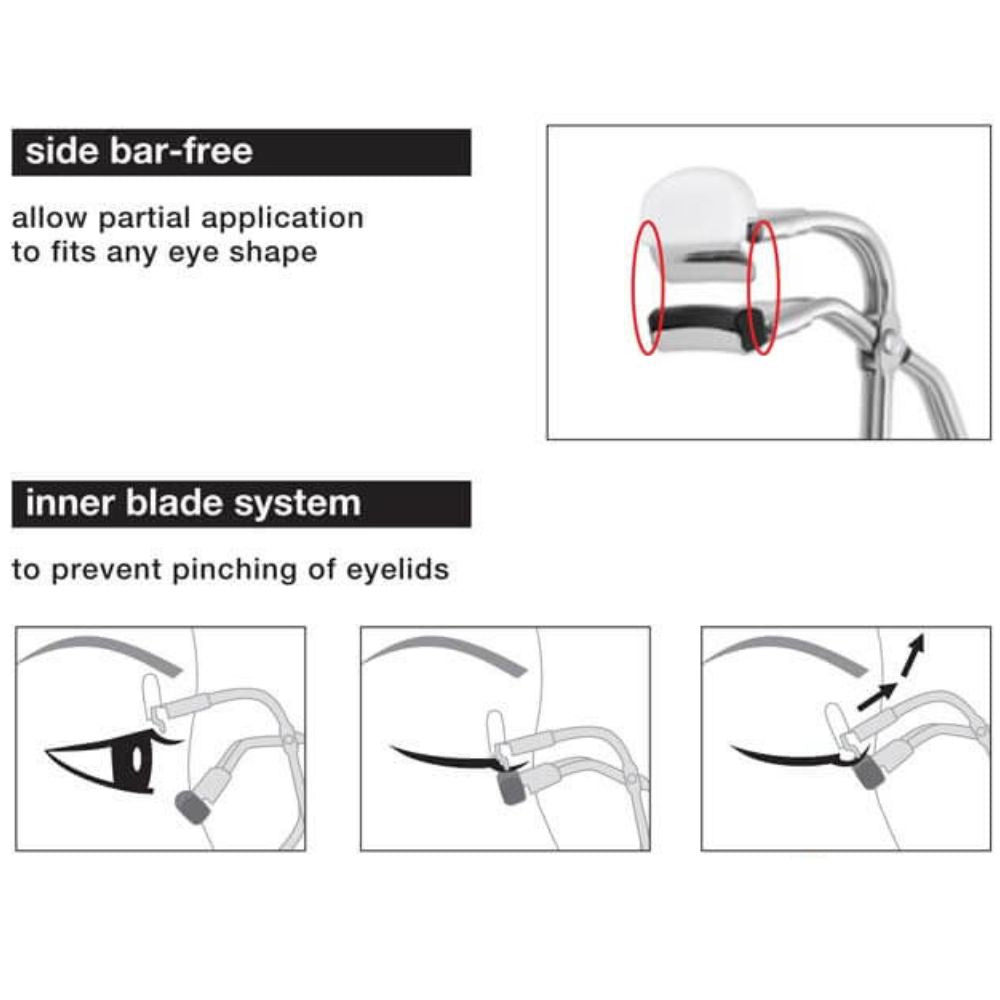 Specially created for Asian eyes, S Curler functional yet sleek side-bar free design allows partial, precise, and pinch free application and fits all eye shapes.
