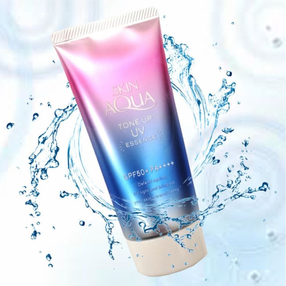 Skin Aqua Toner Up UV Essence offers maximum UV protection and color control, achieving a translucent finish to help brighten the skin.