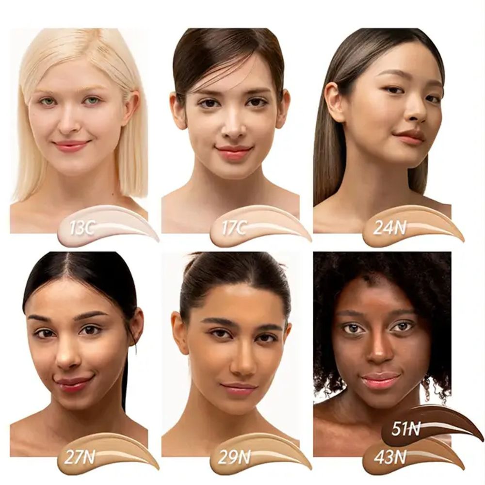 Water, Cyclopentasiloxane, Iron Oxides (CI 77492), Dimethicone, Titanium Dioxide (CI 77891), Trimethylsiloxysilicate, Propanediol, Iron Oxides (CI 77499), Synthetic Fluorphlogopite, Iron Oxides (CI 77491), Isododecane, Octyldodecanol, Diphenylsiloxy Phenyl Trimethicone, Niacinamide, PEG-10 Dimethicone, PEG/PPG-18/18 Dimethicone, 1,2-Hexanediol, Magnesium Sulfate, Disteardimonium Hectorite, Triethoxycaprylylsilane, Polyglyceryl-4 Isostearate, Stearic Acid, Alumina, Potassium Sorbate, Isopropyl Titanium Triisostearate, Fragrance(Parfum), Adenosine, Trisodium Ethylenediamine Disuccinate, Polymethyl Methacrylate, Haematococcus Pluvialis Oil, Butylene Glycol, Glycerin, Dipropylene Glycol, Polyglyceryl-3 Polydimethylsiloxyethyl Dimethicone, Sodium Palmitoyl Proline, Aluminum Hydroxide, Cetearyl Dimethicone/Vinyl Dimethicone Crosspolymer, Polyhydroxystearic Acid, Hibiscus Sabdariffa Flower Extract, Astaxanthin, Neopentyl Glycol Diethylhexanoate, Rosa Rugosa Flower Extract, Pancratium Maritimum Extract, Nymphaea Alba Flower Extract, Propolis Extract
