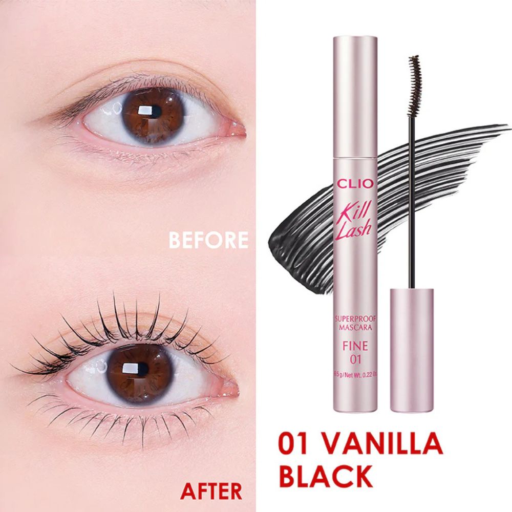 CLIO KILL LASH SUPERPROOF MASCARA FINE -01 VANILLA BLACK